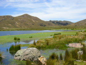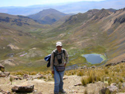 "Seguimos de largo pasando por pequeños caminos que aún no están señalizados, observando en el trayecto plantas aromáticas del lugar y la belleza del paisaje rodeados de montañas con rocas de diferentes colores que no nos deja hasta llegar al mirador de Apacheta, donde la naturaleza nos recibe con un pequeño remolino andino y se respiraba el aire más escaso pero puro. Luego de disfrutar nuestro agua mineral y frutas, empezamos a descender por una pendiente muy estrecho, a medida que avanzábamos ya podíamos observar la hermosa laguna Huara Warani en el seno del volcán apagado, de color celeste (luego se observa de diferentes colores) y una pequeña laguna de color naranja, casi al llegar al borde nos detenemos para observar -en silencio casi religioso- la belleza del lago y las aves que chillaban por nuestra presencia, luego el Sr. Chalco con el guía local nos indican que había llegado la hora de probar el agua de manantial mas pura en la salida principal del cráter…" Ver la crónica completa del viaje >>>>